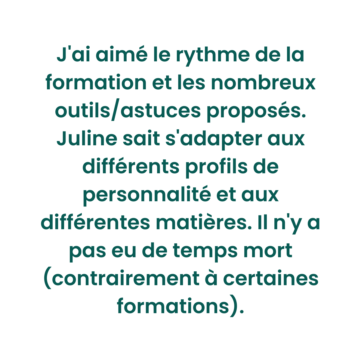 « Formation à faire absolument !!! Contenu riche et adapté. Juline est rassurante et encourageante. C’est top ! »