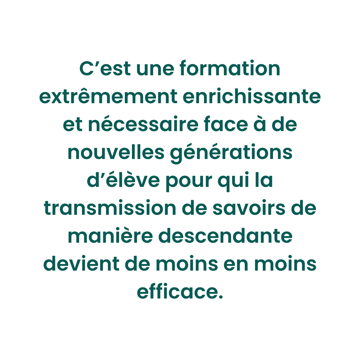« Une formation motivante pour ce qu'elle apporte, ce qu'elle permettra. Une formation à la pointe de la recherche. Une formation permettant d'élargir ses méthodes d'enseignement. »